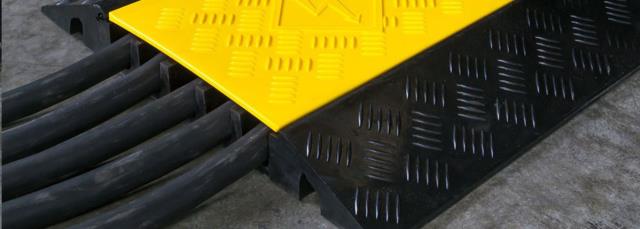• Molded cable ramps are used to provide protection for many types of cable, up to 1.3" diameter. Renting cable ramps eliminate the need for burying, bypassing or stringing cables. Cable ramps for rent feature five channels and an interlocking design that allows combining units. End caps and protector bridges are also available. Allows for up to 5- 4/0 single wire cables to pass through or under for protection of the cables or conduits.